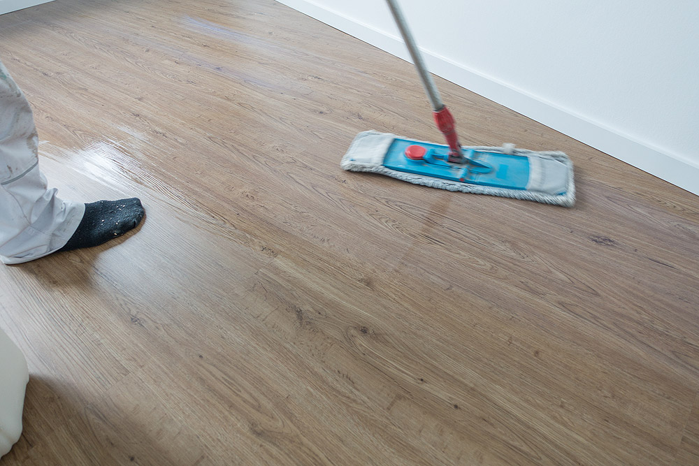 Damit Ihr Fußboden möglichst lange schick und edel aussieht, wird ein für die Erstpflege geeigneter Vinyl-Grundschutz gleichmäßig dünn aufgetragen. So wird der Boden gut versiegelt. Arbeit ist erledigt und jetzt ab ins Wochenende.