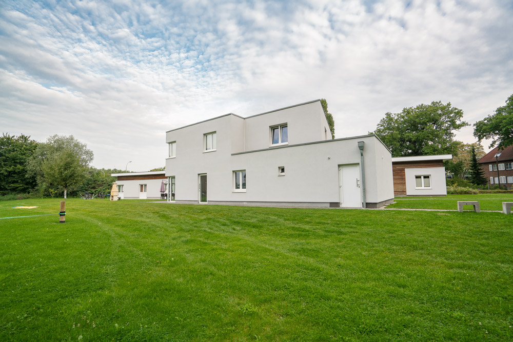 Die Flächen sind neu verputzt und mit spezieller Fassadenfarbe gegen Pilz- und Algenbefall beschichtet worden. Ein Beauty-Rezept für die Fassade: Schluss mit Algen & Co.
