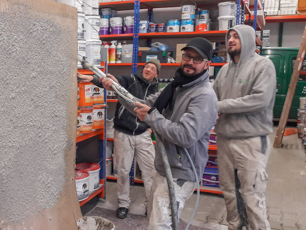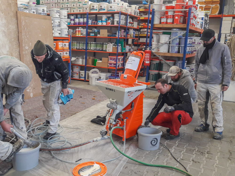 Für die Bereiche Decke, Wand, Boden und Wärmedämmung haben wir unsere Mitarbeiter mit unserer neuen PFT-Förderpumpanlage vertraut gemacht.